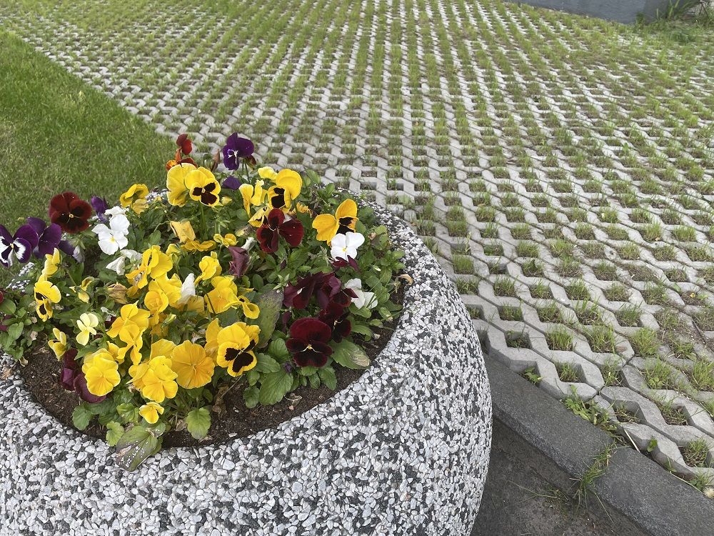 Для заполнения ячеек решетки и создания плотного газона рекомендуем использовать устойчивые к вытаптыванию травосмеси: мятник луговой, овсяница красная, полевица тонкая или райграс пастбищный.