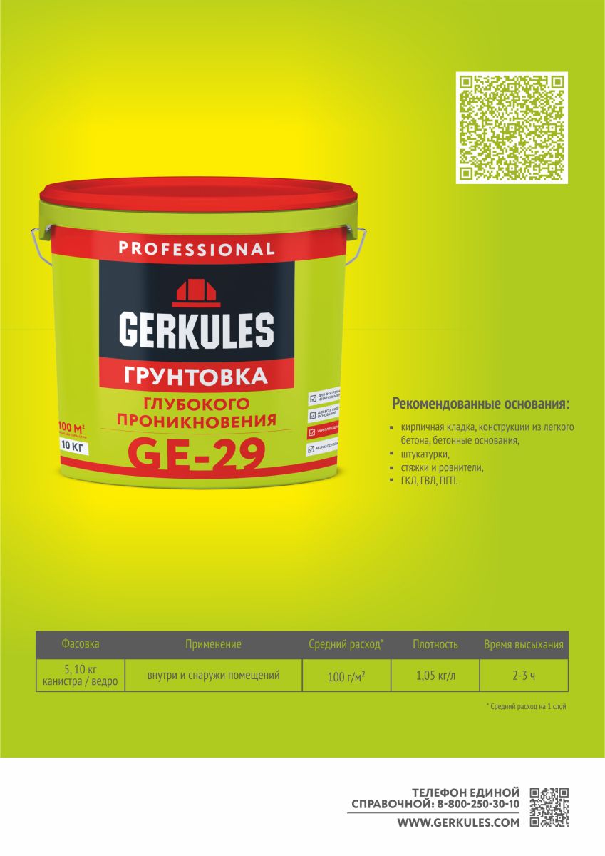 Грунтовка глубокого проникновения Геркулес GE-29, 10 л