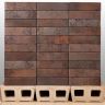 Кирпич имеет гладкую матовую лицевую поверхность с мелкорельефными углублениями произвольной формы. Присутствует перламутровый блеск. В основе паттерна теплые оттенки от коричневого до темно-коричневого.