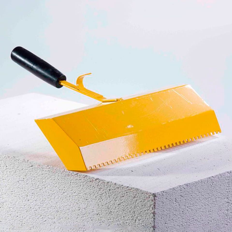 Используются для нанесения раствора, обеспечивая его толщину в 1-3 мм. Ширина кельмы соответствует ширине блоков, благодаря чему раствор кладётся равномерно по всей поверхности блока.