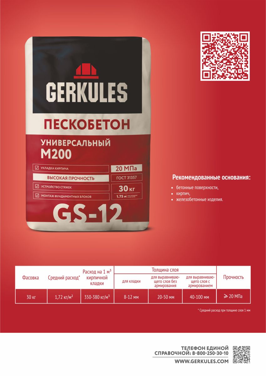Пескобетон M200 Геркулес GS-12/ 30 кг