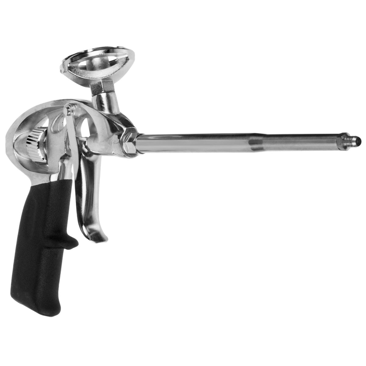 Пистолет для монтажной пены имеет алюминиевый адаптер с тефлоновым покрытием. Шток и игла из нержавеющей стали с тефлоновым покрытием. Металлическое сопло с тефлоновым покрытием. Двухкомпонентная рукоятка.