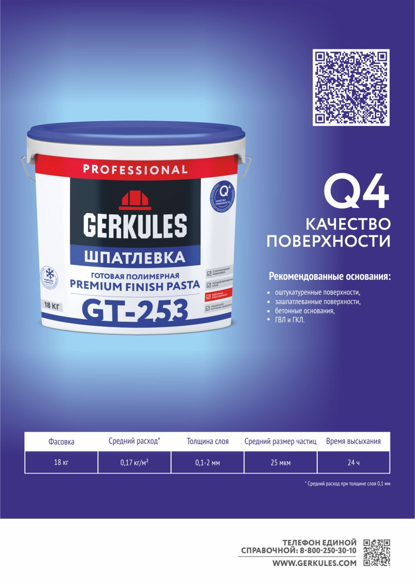 Шпатлевка 18 кг ФИНИШ-ПАСТА полимерная Геркулес GT-243