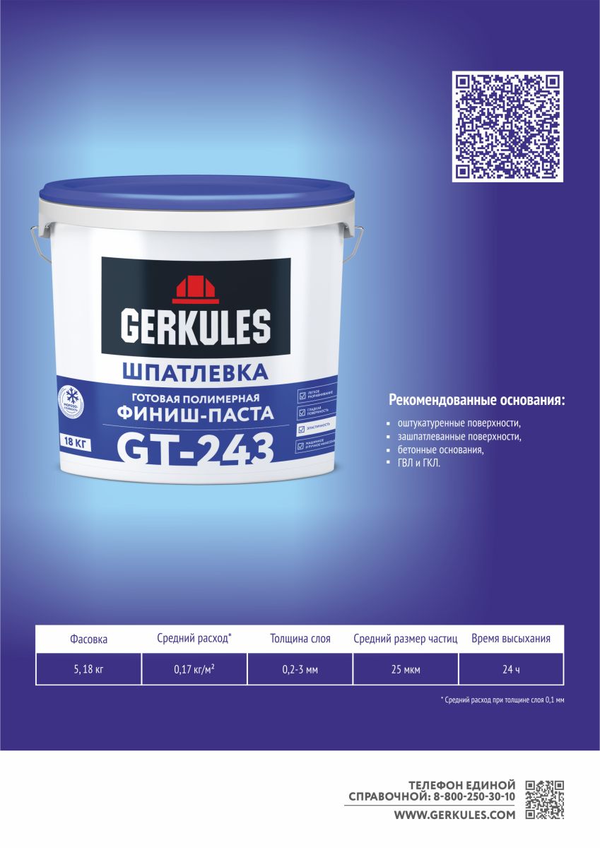 Шпатлевка 18 кг ФИНИШ-ПАСТА полимерная Геркулес GT-243