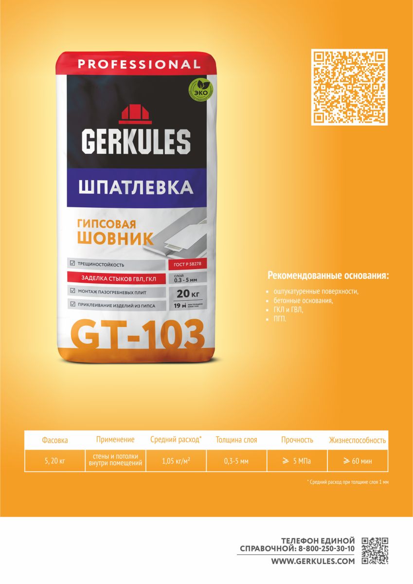 Шпатлевка 20кг ШОВНИК GT103 Геркулес
