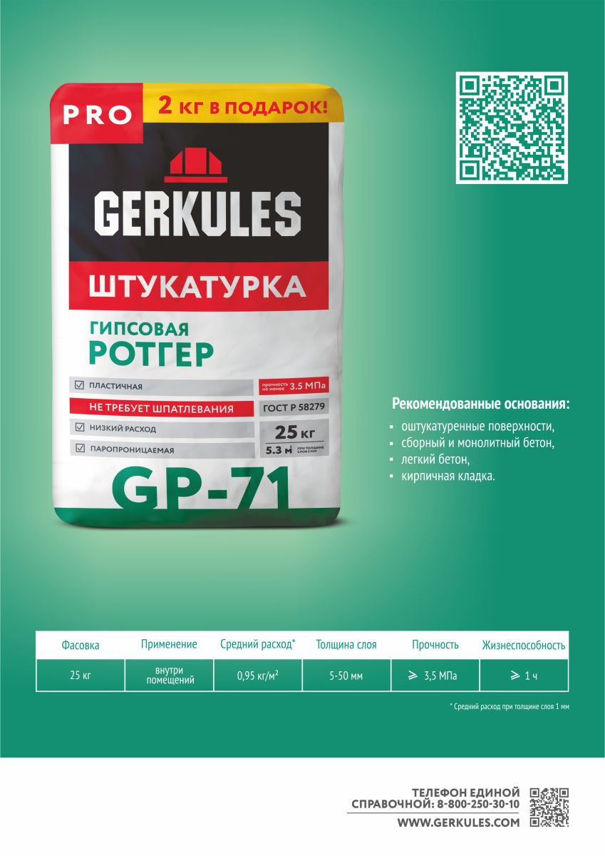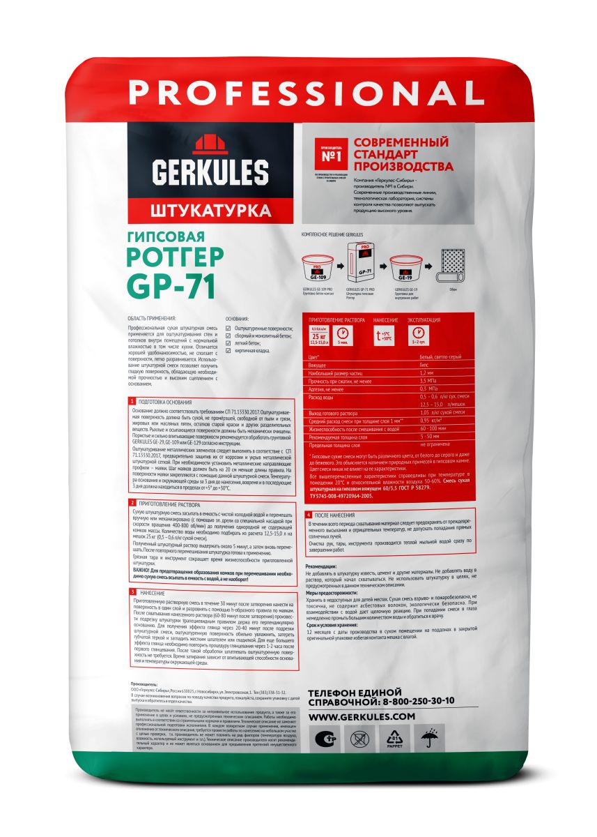 Штукатурка 25кг гипсовая GP71 РОТГЕР PRO Геркулес