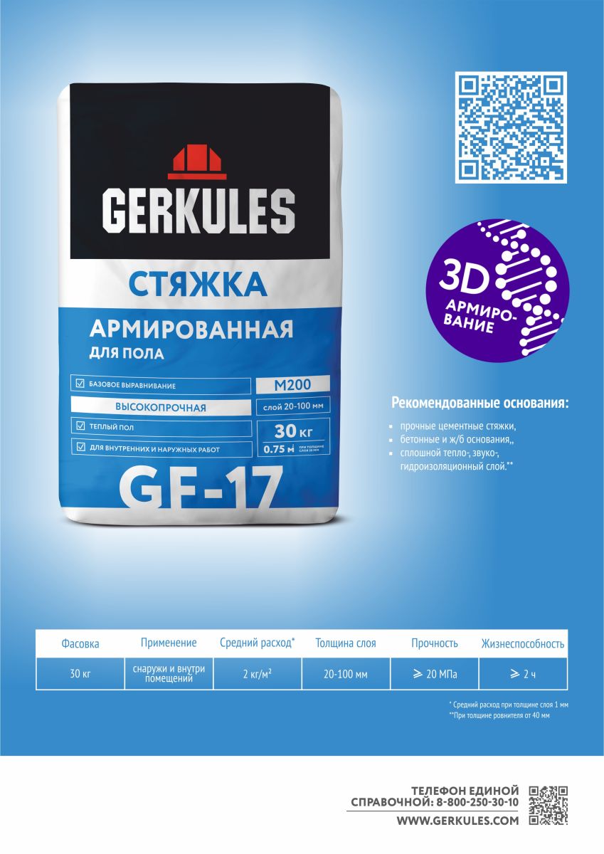 Стяжка армированная для пола Геркулес GF 17 / 30кг