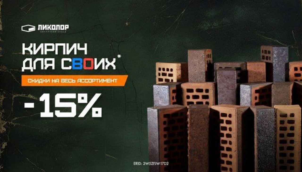 Только для участников СВО и их семей скидка 15% на весь ассортимент облицовочного кирпича ЛИКОЛОР.